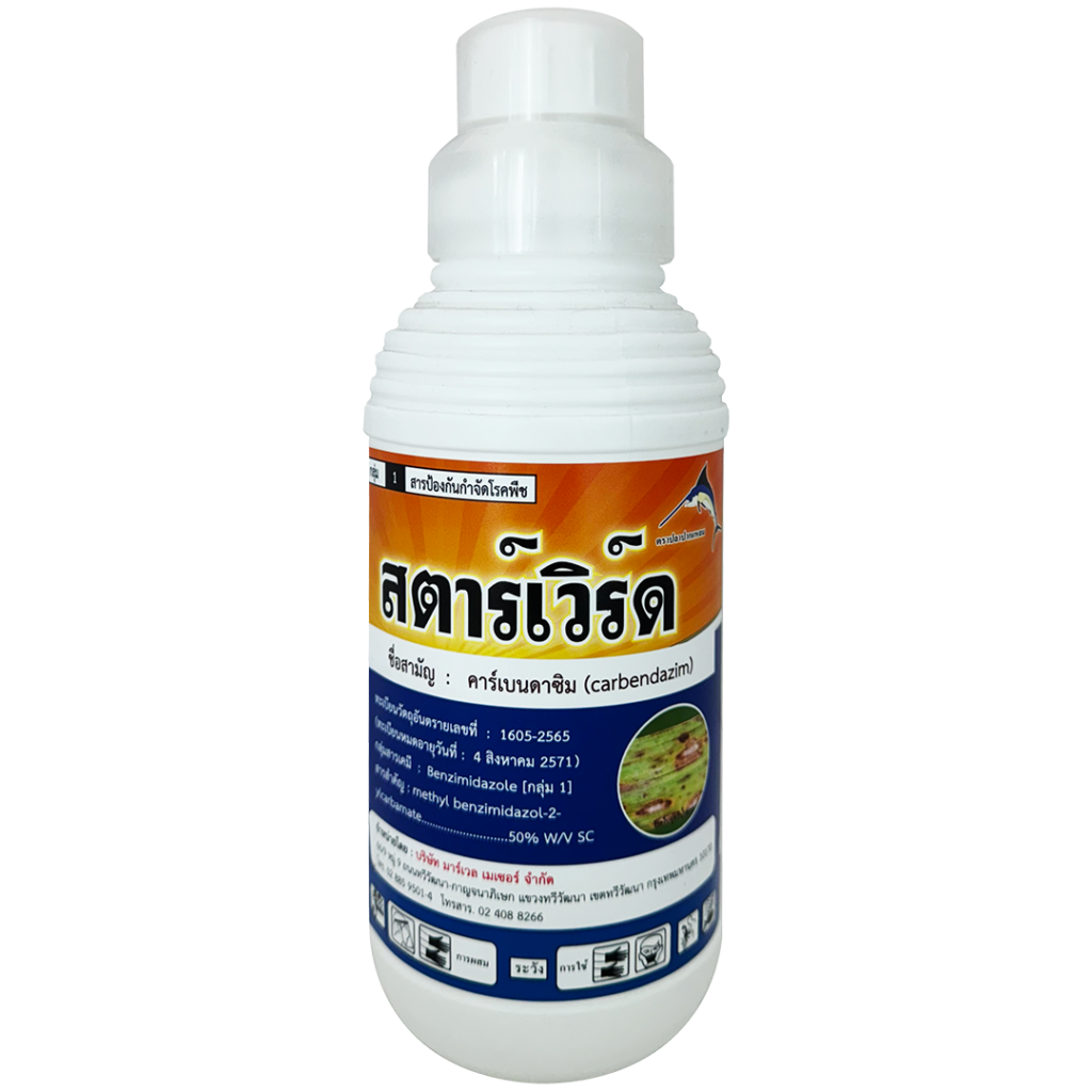 ชื่อสามัญ : คาร์เบนดาซิม 50% W/V SC สารของเหลวสีขาว ออกฤทธิ์แบบดูดซึม สามารถดูดซึมเข้าทั้งทางใบและทางราก ใช้ป้องกันและกำจัดโรคดอกจุดสนิมในกล้วยไม้ โรค