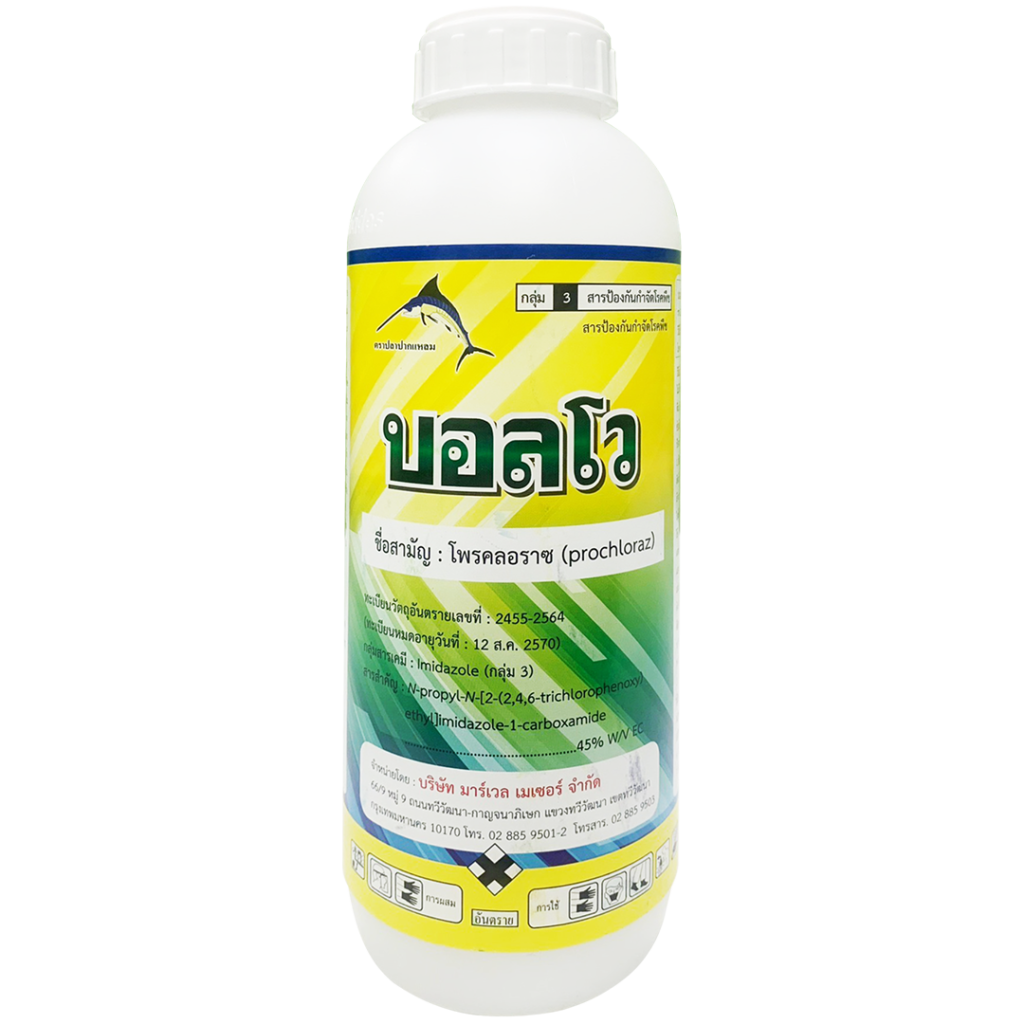 ชื่อสามัญ : โพรคลอราช 45% W/V EC สารของเหลวละลายน้ำ ออกฤทธิ์ทั้งป้องกันและรักษาควบคุมโรคพืชที่เกิดจากเชื้อรา ป้องกันกำจัดโรคกาบใบแห้งในข้าว ป้องกันกำจ