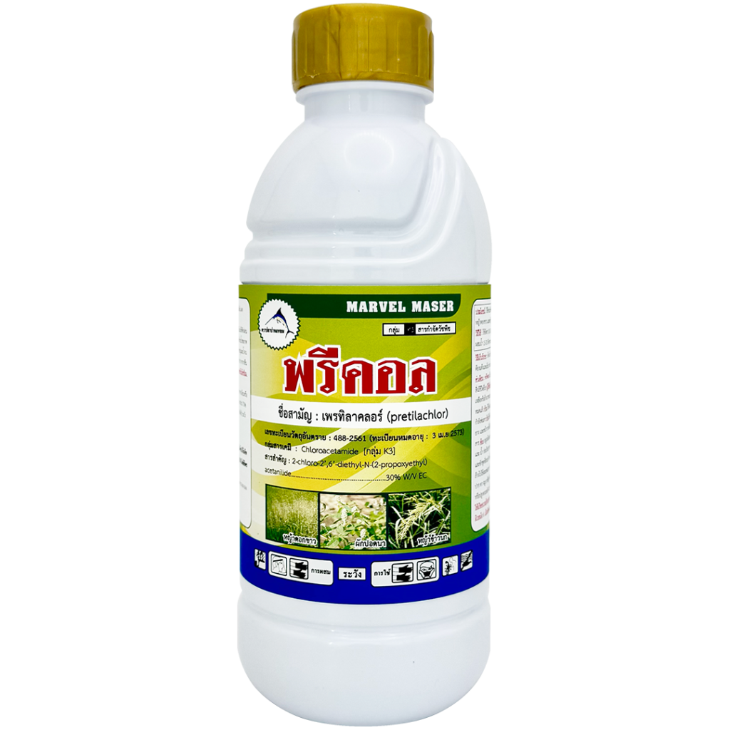 ชื่อสามัญ : เพรทิลาคลอร์ 30% W/V EC สารของเหลวละลายน้ำเป็นสีขาวขุ่น ชนิดคุมก่อนวัชพืชงอก ใช้ในข้าวนาหว่านน้ำตม สามารถใช้ในดินเปียกที่มีความชื้นได้ ใช้