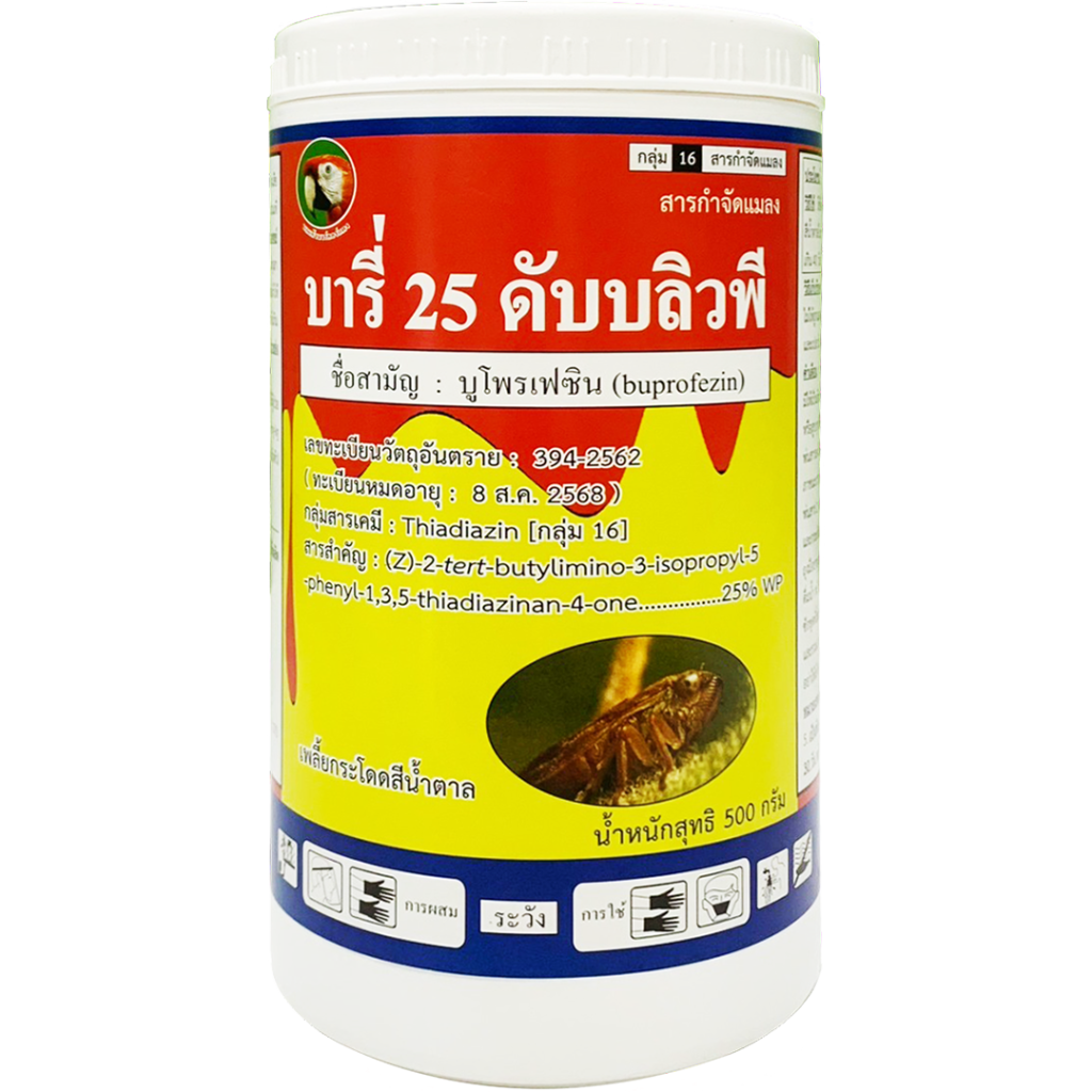ชื่อสามัญ : บูโพรเฟซิน 25% WP สารชนิดผงแป้งละลายน้ำ กำจัดแมลงปากดูด ออกฤทธิ์เป็นสารยับยั้งการลอกคราบของตัวอ่อน ควบคุมการฟักไข่ ลดการวางไข่ จึงควบคุมแม