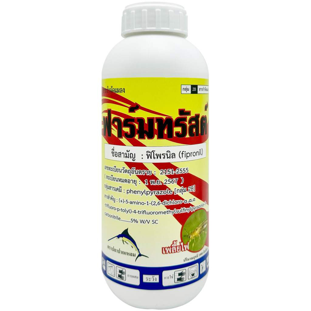 ชื่อสามัญ : ฟิโพรนิล 5% SC สารละลายของเหลว สีขาวขุ่น ออกฤทธิ์ดูดซึมแบบสัมผัสตายและกินตาย เป็นยาเย็น ป้องกันกำจัด : เพลี้ยไฟ เพลี้ยกระโดดสีน้ำตาล เพลี้